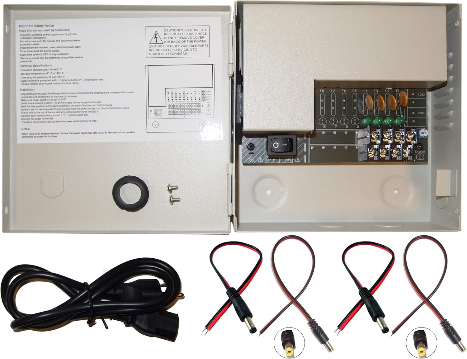 Power supply panels for up to 18 cameras offer a more professional alternative to individual power adapters. Each outlet is individually fused and each panel is surge-protected. LED light for monitoring the power status. key lock prevents unauthorized access. pro-size box provides plenty space for wires. It is divided into low-voltage and high-voltage spaces to protect cameras from high-voltage damage.