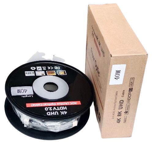 UHD CABLE HDMI 2.0 60HZ HIGH SPEED, MADE FROM OPTICAL FIBER MATERIAL. DURABLE AND liable.40M HDMI cable.WITH AND HDMI COMPATIBLE DEVICES. HDMI 2.0 OPTICAL FIBER CABLE HIGH DEFINITION MULTIMEDIA INTERFACE ARE TO PROVIDE HIGH--BANDWIDTH UNCOMPRESSED DIGITAL AUDIO AND VIDEO TRANSMISSION. BASED ON THE LATEST GENERATION TMDS- CORE TECHNOLOGY, PICK UP WITH A FEW GIGABIT PER SECOND BANDWIDTH OF THE CONTENT CABLE BE HIGH DEFINITION VIDEO AND MULTI-CHANNEL AUDIO DATA BINDING TO A SINGLE INTERFACE, FULLY SUPPORT 1920 1080P HD RESOLUTION, THE MAXIMUM TRANSMISSION SPEED OF 5GBPS, IN ORDER TO REALIZE THE TRUE HD LINK, MAINLY USED IN DIGITAL HI DEFINITION TV,PLASMA TV, LCD TV, REAR PROJECTORS V, PROJECTORS, DVD.