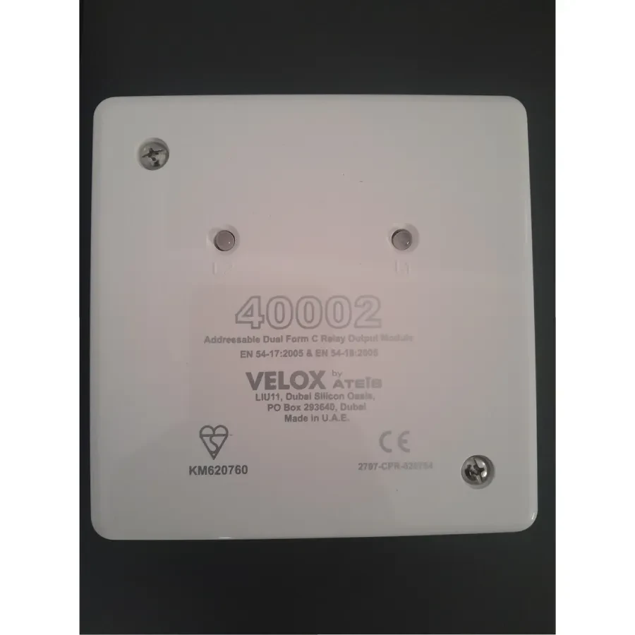 The Velox 40002 Addressable Dual Form-C Relay Output Module is a crucial element for any contemporary fire detection and control system, providing unmatched reliability and user-friendliness. It is an excellent choice for both new installations and system upgrades, ensuring optimal operation of your fire safety system.